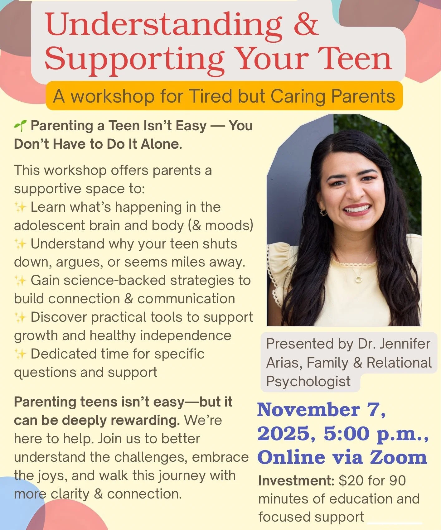 Facilitator: Dr. Jennifer Arias, PSY.D., LCP